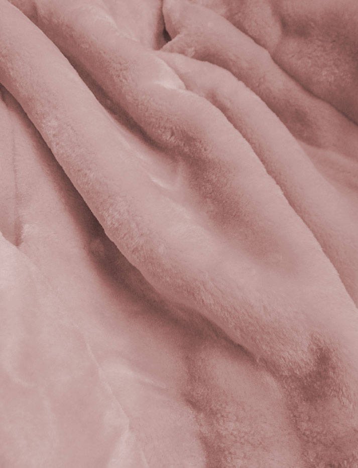 The fur tied with strings covers the zipper