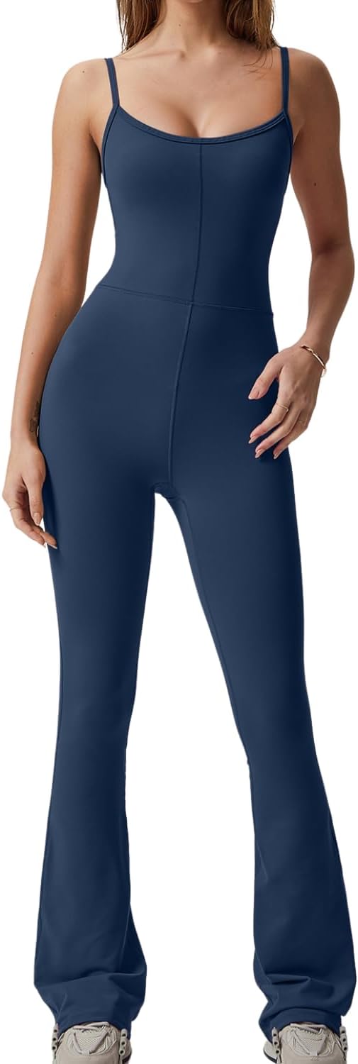 Flare Jumpsuits for Women Spaghetti Straps Scoop Neck Bodycon Full Length Casual Unitard Playsuit